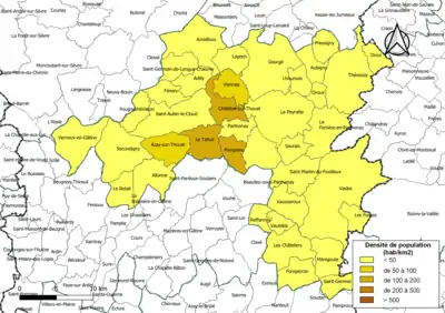 | Châtillon-sur-Thouet | 79080 | Chatillonnais | 16,45 | 2 671 (2021) | 162 |