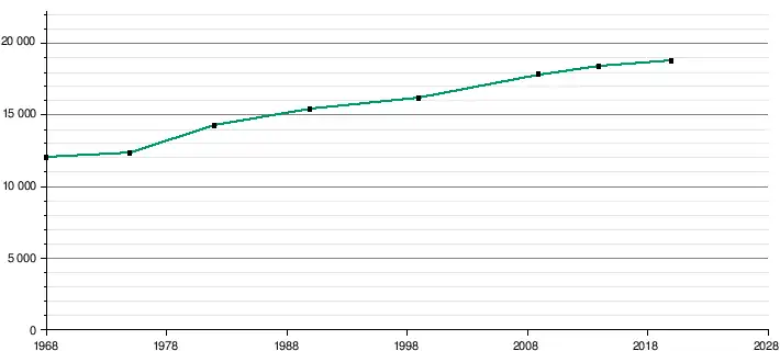 Selon les données du recensement général de la population de 2015, elle comptait 7 287 ménages, une densité de 54 habitants/km2 et 92 % de résidences principales [12].