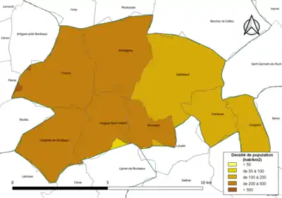 | Pompignac | 33330 | Pompignacais | 11,62 | 3 393 (2021) | 292 |