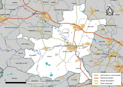 Le territoire est encadré par deux axes routiers importants, la RN 12 au nord qui relie Rennes à Saint-Brieuc et la RN 24 au sud qui relie Rennes à Lorient. Il est aussi desservi par le réseau SNCF sur les communes de Montfort-sur-Meu et Breteil.