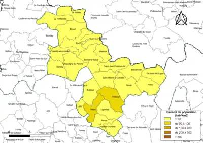 | Lignières | 41115 | Ligniérois | 15,77 | 400 (2021) | 25 |
