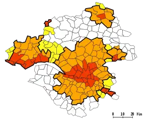 - si elles sont attirées par plusieurs pôles urbains, elles sont dites multipolarisées, et n'appartiennent à aucune aire urbaine.