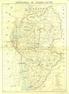 Par ailleurs, le Ruanda-Urundi est devenu un protectorat de la Belgique le , fut rattaché au Congo belge en 1925[25]. De ce fait, il était soumis aux lois du Congo belgeet notamment celles concernant la justice et principalement les pourvois en cassation. La Cour de cassation établie en Belgique était aussi compétente pour connaître les affaires provenant du territoire Ruanda-Urundi[26].