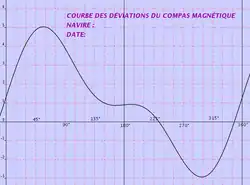 - Cette déviation est propre à chaque compas embarqué sur chaque navire et est fonction du cap compas (Cc). Elle peut par ailleurs être influencée par des modifications de l'environnement (masses métalliques à proximité du compas, matériels électroniques, etc.).