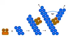 Le complexe Arp2/3 est un nucléateur qui va mimer la structure de l'actine. Il va se fixer sur l'extrémité chargé négativement et la croissance se fera sur l'extrémité chargée positivement. Il va former une jonction en « Y » sur un microfilament d'actine mère. Il va ainsi former un réseau branché de microfilaments[3]. Cela va permettre la création de réseaux que les cellules utiliseront pour se déplacer.