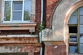 Les briques de la façade tombent ; des fenêtres sont murées.