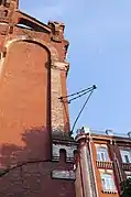 À gauche, le bas de l’ancienne façade ornée mais croulante a été réparée par un simple mur plein.