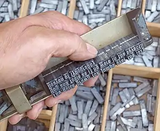 La composition est le principe fondamental qui a régi l’imprimerie depuis Gutenberg, basé sur l’utilisation des caractères mobiles en alliage de plomb, d’antimoine et d’étain.