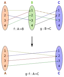 Soient X, Y et Z trois ensembles quelconques. Soient deux fonctions et . On définit la composée de f par g, notée , par