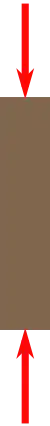 En compression uniaxiale[2], les forces sont dirigées dans une seule direction, de sorte qu'elles agissent en vue de la diminution de la longueur de l'objet le long de cette direction. Les forces de compression peuvent également être appliquées dans de multiples directions, par exemple vers l'intérieur le long des bords de l'assiette ou sur tout le côté de la surface d'un cylindre, de manière à réduire sa région (compression biaxiale), ou vers l'intérieur sur toute la surface d'un corps, de manière à réduire son volume[3].