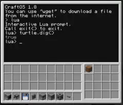 lua est exécutée.Une turtle est un bloc d'ordinateur mobile ; une sorte de robot programmable. Une turtle peut se déplacer en utilisant du carburant tel que du charbon, de la lave ou d'autres objets Minecraft combustibles. Les turtles peuvent être programmées et utilisées comme des ordinateurs normaux, mais ont un écran plus petit et une petite quantité de stockage « physique » (inventaire) pour les blocs et les objets du jeu. De plus, les turtles peuvent être équipées d'outils et d'armes tels que des pioches et des épées pour miner des blocs et tuer des monstres.
