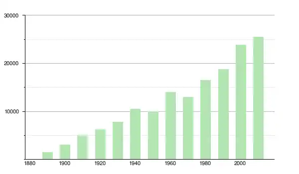 | 1950 | 9 991 | ▼ −4,51 % | |