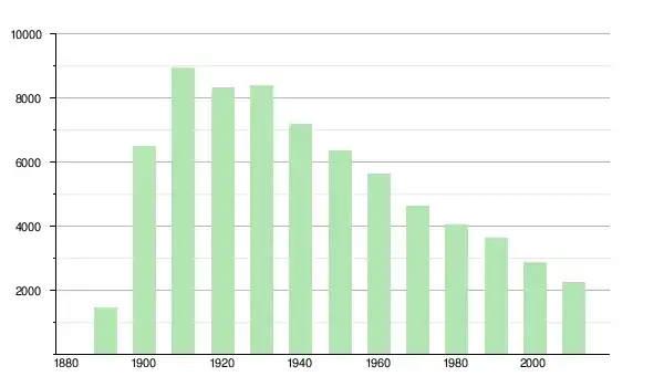| 1950 | 6 360 | ▼ −11,67 % | |