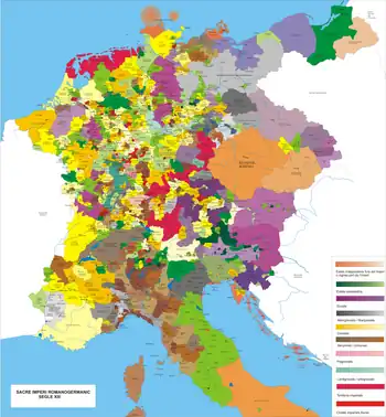 L'effacement de l'autorité royale au sein d'un royaume de Bourgogne incorporé au Saint-Empire romain germanique à partir de 1032 sous influence ottonienne caractérise le règne de Rodolphe III[20]. Les archevêques de Vienne, qui ont titre de comtes, reçoivent du pape Calixte II (1119-1124) issu de la famille des comtes palatins de Bourgogne, ancien archevêque de Vienne (1084-1119), la juridiction de Vienne sur sept diocèses ; il accorde à Saint-Maurice le titre de primatiale : son ancien archevêché a la primauté sur six autres provinces ecclésiastiques du sud de la France : Bourges, Bordeaux, Auch, Narbonne, Embrun et la Tarentaise. En 1120 il interdit aux laïcs d’habiter dans le quartier canonial de Vienne. De 1146 à 1227, jusqu'à 1227, les comtes de Vienne issus de la Maison anscaride d'Ivrée/comtes palatins de Bourgogne, sont également comtes de Mâcon. Ils doivent cependant partager le comté de Vienne avec l'archevêque de Vienne et les comtes d'Albon, Dauphins de Viennois vers 1142. En 1146, Guillaume III de Mâcon, neveu de Calixte II et frère du comte Renaud III de Bourgogne, prétendait occuper Vienne au mépris des droits de l'archevêque de la ville, Humbert, fils du comte d'Albon Guigues III. Conrad III, par une lettre adressée aux évêques et aux princes de la région, déclara que la cité de Vienne tout entière était soumise à la seigneurie de l'Église[39]. De la modification nouvelle du pouvoir comtal[20] découla une querelle entre les comtes d'Albon, l'archevêque de Vienne et les comtes de Mâcon (famille des Anscarides de Bourgogne-Mâcon) au sujet des droits sur la ville de Vienne. Le 13 janvier 1155 à Rivoli[40], Berthold de Zähringen, gouverneur ou recteur dit "de Bourgogne", assure sa fidélité au dauphin Guigues V, comte d'Albon et neveu de l'archevêque Hugues, et lui donne tout ce que lui-même tient de ses prédécesseurs ou des rois dans la ville de Vienne, s'engageant à combattre Guillaume III comte de Mâcon et de Vienne s'il tente d'y mettre obstacle. À son tour, le dauphin lui fait hommage et promet de le recevoir décemment dans la ville en présence de Frédéric, roi des Romains, qui donne son consentement. La suzeraineté reste ainsi à l'archevêché et aux Dauphins, les comtes de Mâcon restant décorés du titre prestigieux mais secondaire de comtes de Vienne. Selon le site de la Foundation for Medieval Genealogy, ici très restrictif, il n'existe pas avec certitude de comte de Vienne issu des comtes palatins de Bourgogne avant le fils de Guillaume III, Gérard de Mâcon, décédé le 15 septembre 1184[41].