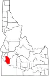 | Canyon | 1892 | La gorge de la Boise River ou la gorge de la Snake River qui fait office de frontière naturelle avec le comté d'Owyhee | Caldwell | 198 871 | 1 563 | 1 521 | 42 | 130,7 | 5,3 % | ![]() |
