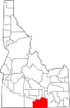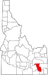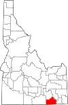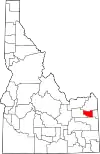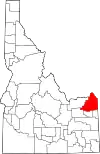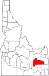 | Caribou | 1919 | Les monts Caribou, une chaîne de montagne des montagnes Rocheuses orientée Nord-Sud qui s'étend dans le Sud-Est de l'État | Soda Springs | 6 808 | 4 658 | 4 569 | 89 | 1,5 | -2,2 % | ![]() |