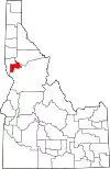 | Clearwater | 1911 | La Clearwater River, un tributaire principal de la Snake River, qui traverse le comté | Orofino | 8 577 | 6 444 | 6 364 | 80 | 1,3 | -2,1 % | ![]() |