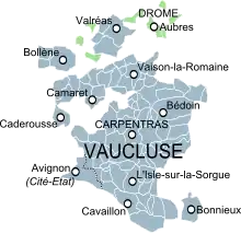 Le département de Vaucluse fut ainsi définitivement constitué par la réunion de la cité-État d'Avignon, du Comtat Venaissin incluant l'enclave des papes dans la Drôme devenue le canton de Valréas, des principautés d'Orange et de Mondragon, de la viguerie d'Apt et le comté de Sault.