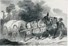 Le chariot comtois tracté par le cheval du pays, vers 1850