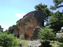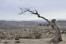 La crucifixion de Conan sur « l'arbre du malheur » est filmée en mars 1981 dans le désert de Tabernas, au nord d'Almería. L'arbre est fait de couches de plâtre et de Styrofoam appliquées sur une ossature de bois et d'acier. Il est assemblé sur une plaque tournante afin d'être mobile pour assurer une cohérence au niveau des ombres tout au long des trois jours de tournage de la scène. Schwarzenegger est assis sur une selle de bicyclette montée dans l'arbre tandis que de faux clous sont apposés à ses poignets et à ses pieds[79]. La scène où Valeria combat les esprits pour sauver Conan ainsi que celle de la bataille finale contre les troupes de Doom sont filmées dans les marais salants d'Almerimar. Trois collines de sable hautes de neuf mètres sont édifiées, ce qui nécessite le déplacement de 15 000 m3 de sable, et à leur sommet sont installés des cercles de fausses pierres rappelant Stonehenge[80],[51]. Ce bouleversement du paysage attire les protestations des environnementalistes et les producteurs promettent de restaurer le site après le tournage[81].