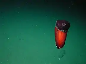 Le seul échinoderme pélagique connu à ce jour : la mystérieuse Pelagothuria natatrix, observé dans les abysses au large des îles Galápagos.