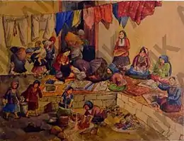 Femmes étudiant dans une médersa en Azerbaïdjan, toile d'Azim Azimzade, 1935.
