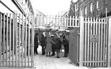 La trêve de 1975 met fin à l'internement sans procès, mais les procès sans jury et avec un seul juge continuent[77]. Le est annoncée la fin du Special Category Status, applicable à partir du . Désormais, les infractions paramilitaires sont jugées comme du droit commun en Irlande du Nord[68], tandis que de nouvelles mesures sécuritaires sont établies au Sud[F 56]. Dès 1976, des prisonniers républicains du Maze refusent de porter l'uniforme de prisonniers de droit commun. Cette Blanket protest (littéralement « protestation de la couverture »)[Note 14] s'amplifie : au milieu de l'année 1977, on compte autour de 150 participants[78], en 1978 autour de 300[79]. En , le mouvement prend une autre envergure avec la Dirty protest (littéralement « protestation de la saleté »). Les prisonniers républicains refusent de sortir de leur cellule pour se laver pour protester contre la violence des gardiens. Par la suite, ils jettent leur urine dans les couloirs de la prison et tapissent les murs de leur cellule avec leurs excréments[80]. Mais le gouvernement britannique ne réagit pas[81].