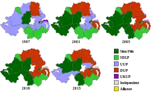 Le , le nouveau gouvernement exécutif issu de l'accord du Vendredi saint est établi[CAIN 5], David Trimble devient Premier ministre et Seamus Mallon vice-Premier ministre, les deux fonctions étant politiquement similaires en vertu de la diarchie consociationaliste instituée par l'accord[106]. Le Direct Rule est rétabli à plusieurs reprises pendant la décennie par le Secrétaire d'État pour l'Irlande du Nord, principalement à cause du manque d'avancées du processus de paix[CAIN 5]. Suivant l'accord de paix, la Royal Ulster Constabulary se transforme en Police Service of Northern Ireland le 4 novembre 2001, malgré l'opposition des unionistes[107],[CAIN 6]. Les partis modérés subissent un recul électoral, et, le , Ian Paisley, du Democratic Unionist Party, devient Premier ministre d'Irlande du Nord et Martin McGuinness, ancien chef d'État-major de l'IRA provisoire et membre du Sinn Féin, vice-Premier ministre[108]. Démissionnaire l'année suivante, Ian Paisley est remplacé à son poste par Peter Robinson, du Democratic Unionist Party[109].