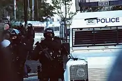 Le chef du PSNI, Matt Baggot, a condamné la violence du UVF pour avoir « orchestré la violence pour leurs propos égoïstes ». Tout le monde involucré doit faire un pas en arrière. Le manque de contrôle est assez inquiétant. La seule solution est une solution politique. [Contrairement à cela] Ils vont traiter notre habilité de confronter les drogues, notre habilité de confronter les problèmes de l'alcool, et de confronter ce qu'il s'agit d'une grande menace."[15]