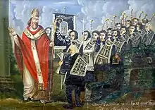 - l'Archiconfrérie de la Sainte-Croix de Nice[10] Sociétas Gonfalonis ou Société du Gonfalon, plus connue sous le nom de confrérie des pénitents blancs, est une confrérie de pénitents fondée au début du XIVe siècle. Depuis 1817 elle est reconnue d'utilité publique. Elle s'occupe de gestion d’hôpitaux et de soins aux malades,