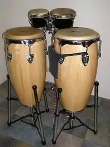 Le conga apparaît au XVIIIe siècle à Cuba. C'est un instrument de percussion, un tambour à une seule peau percutée avec les mains. L'emploi de baguettes est fait par adaptation de rythmes traditionnels d'autres cultures sur cet instrument. Il se décline en différentes tailles jouées par un ou plusieurs interprètes, et depuis la seconde moitié du XXe siècle, on en peut jouer de plusieurs à la fois. Il s'est répandu dans toute la musique latine.