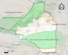 L’inventaire des zones naturelles d'intérêt écologique, faunistique et floristique (ZNIEFF) a pour objectif de réaliser une couverture des zones les plus intéressantes sur le plan écologique, essentiellement dans la perspective d’améliorer la connaissance du patrimoine naturel national et de fournir aux différents décideurs un outil d’aide à la prise en compte de l’environnement dans l’aménagement du territoire. Deux ZNIEFF de type 1[Note 1] sont recensées sur la commune[14] : la « plaine agricole et aérodrome de Lézignan-Corbières » (541 ha), couvrant 3 communes du département[15], et le « plateau de Montbrun et de Conilhac » (719 ha), couvrant 6 communes du département[16].