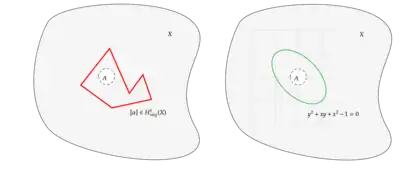 où est le sous-groupe de classes de cohomologie qui sont représentées par des formes harmoniques de type . Autrement dit, ce sont les classes de cohomologie représentées par des formes différentielles qui, dans un certain choix de coordonnées locales , peuvent être écrites sous la forme d'une fonction harmonique multipliée par :