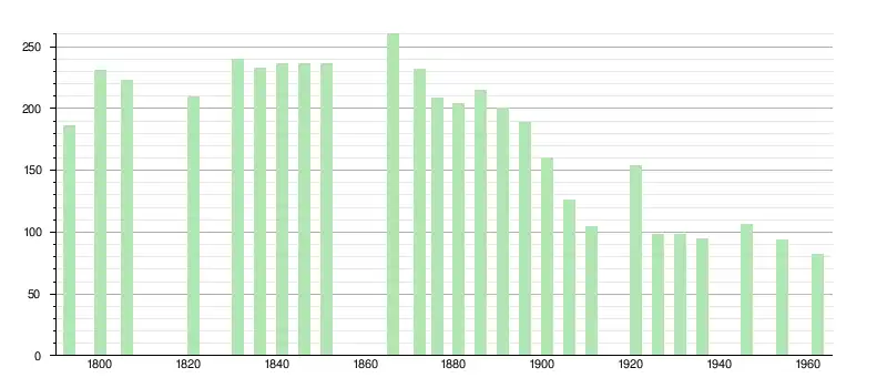 Cette forte perte démographique s'explique d'abord par l'augmentation des départs. En effet, seul le solde migratoire déficitaire explique la perte de 32 habitants entre 1859 et 1886 ; puisque, dans le même temps, le nombre des naissances et des décès s'équilibre (120 naissances contre 118 décès)[18]. L'exode rural vers les zones urbaines est ainsi enclenché.