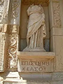 Personnification de la connaissance (en grec ancien : Ἐπιστήμη, Epistémè) dans la Bibliothèque de Celsus (Κέλσος) à Éphèse en Turquie.