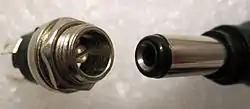 Ce type de connecteur peut être nommé à l'anglaise "Barrel Jack", ou en Français "Prise Baril", ou encore "Jack Cylindrique", ce qui peut rendre difficile les recherches sur internet.