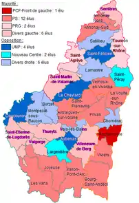 Étiquettes politiques des conseillers généraux de l'Ardèche à la suite des cantonales de 2011