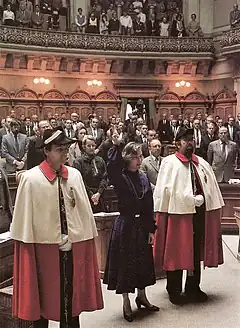 Investiture de la première conseillère fédérale Elisabeth Kopp en 1984.