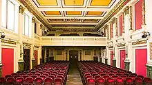 L'un des points forts de l'installation est l'utilisation innovante du grand Ehrbarsaal existant, avec ses élégantes colonnes dorées et son plafond orné en tant que salle d'audience pour la nouvelle salle de concert, augmentée par des équipements de performance de pointe.