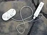 - La manette dite « Classique », vendue moins de 20 €, est compatible avec tous les jeux sans exception, disponibles ou à venir (mais à l'exception des jeux GameCube). L'investissement est recommandé si l'on compte utiliser souvent la Console virtuelle, sinon elle peut se révéler peu utile. Elle est sans fil, mais doit être connectée à la Wiimote par le port destiné au Nunchuk. La fonction Vibration n'est pas fonctionnelle, et ce quelle que soit la manette employée : la manette « Classique » (dépourvue de moteur), ou la manette GameCube.