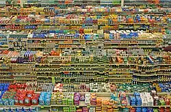 Pour des auteurs comme Jean Baudrillard[13], la société de consommation désigne un ordre social et économique reposant sur la création et la stimulation systématiques d'un désir d'acheter dans des quantités toujours plus importantes des biens et/ou des services. Pour ce faire, la conception des biens produits tendrait à les rendre très spécifiques, moins durables (obsolescence programmée) et leur vente forcée par des efforts de promotion, de publicité ou de fidélisation excessifs. Ainsi l'offre en serait venue à dominer la demande et même la simple morale.