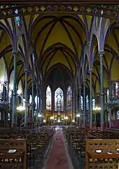 Application des théories constructives rationalistes d'Eugène Viollet-le-Duc, qui y voyait là un moyen de réduire à la fois le prix et le temps de la construction, une architecture qui n'est pas débarrassée des références du passé se développe qui fait usage de ces colonne en fonte. L'église Saint-Eugène-Sainte-Cécile par Louis-Auguste Boileau en est un exemple. Le diamètre moyen des colonnes en fonte y est de 32 cm et l'épaisseur de la fonte est de 2 cm. La clôture du pourtour de l'église est en pierres de taille avec remplissages en moellons. Les nervures des voûtes sont en fer forgé avec remplissages de maçonnerie à doubles parois renfermant une couche d'air qui conserve l'égalité de la température[21].