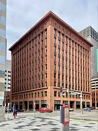 Le Royal Insurance Building de Liverpool conçu par James Francis Doyle (en) en 1895 (érigé de 1896 à 1903) a été le premier à utiliser une charpente en acier au Royaume-Uni[25].