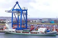 Dans le domaine du transport, un conteneur (terme recommandé en France par la DGLFLF[1] et au Canada par l'OQLF[2]) ou container, est un caisson métallique parallélépipédique conçu pour le transport de marchandises par différents modes de transport. Ses dimensions ont été normalisées au niveau international. Il est muni à tous les angles de pièces de préhension permettant de l'arrimer et de le transborder d'un véhicule à l'autre (pièces de coin, corner casting ou corner fitting). Il fait partie de la catégorie des UTI (« unités de transport intermodal »), comme les caisses mobiles et certaines semi-remorques. Il permet ainsi de diminuer les temps de rupture de charge et de transbordement. Ses adaptations spécifiques facilitent les opérations de « mise en boîte » des marchandises (= empotage) et de vidage (= dépotage).