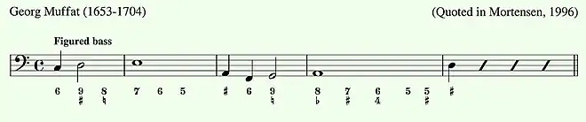 La réalisation d’une basse chiffrée présente un défi supplémentaire. Il ne suffit pas que les harmonies correctes (considérées comme des notes empilées verticalement) soient jouées ; les notes doivent se succéder horizontalement selon certaines règles de conduite des voix, qui à l'époque baroque étaient assez strictes[6]. Le réalisateur, tout en suivant généralement le schéma harmonique indiqué, a le choix sur l'effet rythmique, l'ouverture des accords, l'ornementation, l'arpégiation, l'imitation et le contrepoint.
