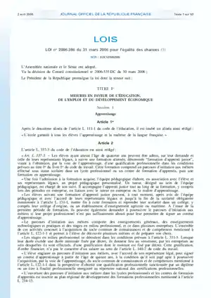 - Loi no 2006-396 du pour l'égalité des chances (1) dans le Journal Officiel