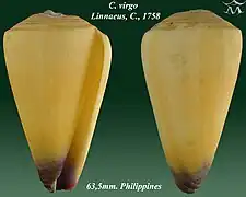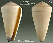- (en) Référence WoRMS : espèce Conus virgo Linnaeus, 1758