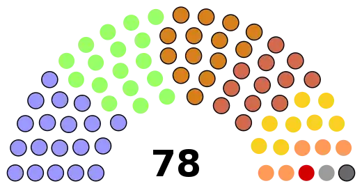 | Parti | Votes | % | +/- | Sièges | % | +/- | ||||