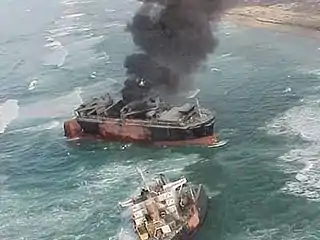 Le , un navire japonais du nom de New Carissa s'échoue sur une plage à 4,3 km au nord de l'entrée de Coos Bay ce qui attire l'attention internationale sur la ville. Le New Carissa était vide, il arrivait au port de Coos Bay pour charger une cargaison de copeaux de bois. Le capitaine estima que le temps était trop mauvais pour que le navire entre au port, il jeta l'ancre. L'équipage jeta l'ancre, mais la chaîne étant trop courte le navire s'échoua sur la plage. 70 000 gallons US (260 m3) de fioul ont été déversés par le navire, avec 165 000 à 255 000 gallons supplémentaires (625 à 965 m3) qui ont été brûlés par les sauveteurs plus tard. La poupe du navire reste sur la plage, la proue a été remorquée vers la mer et a coulé. En , l'épave du New Carissa est coupée en morceaux et retirée de la plage. Le soutien du public à cette suppression n'est pas unanime. Quelques citoyens de Coos Bay pensent qu'il était préférable de laisser cette épave comme attraction touristique.