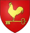 D'argent au coq hardi au naturel, soutenu de la date 1693 de sable, au chef d'azur semé de fleurs de lys d'or.